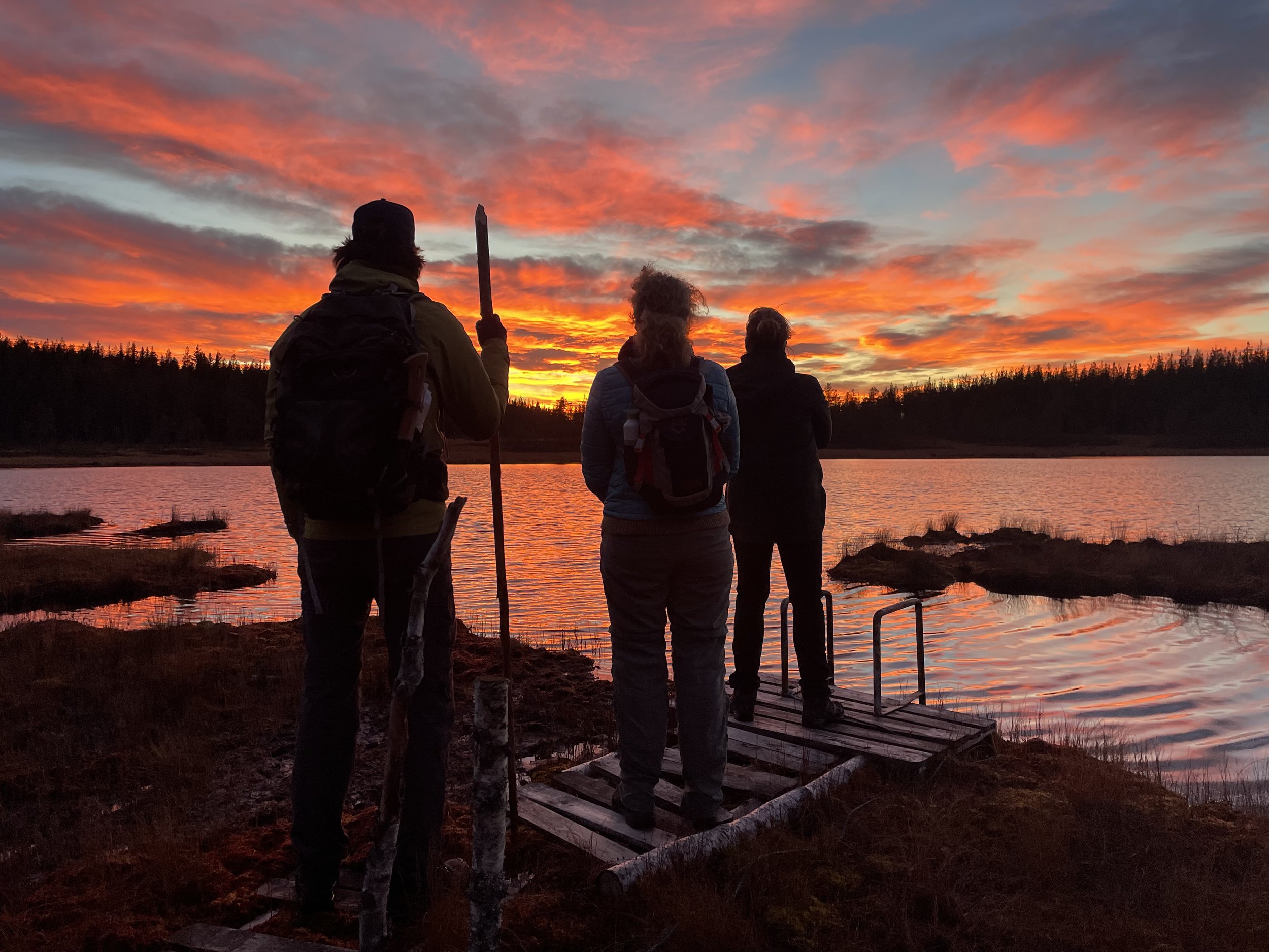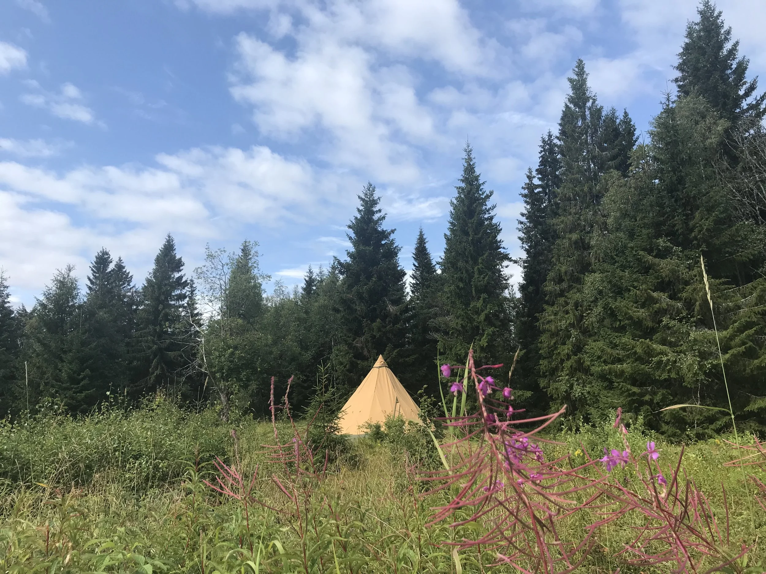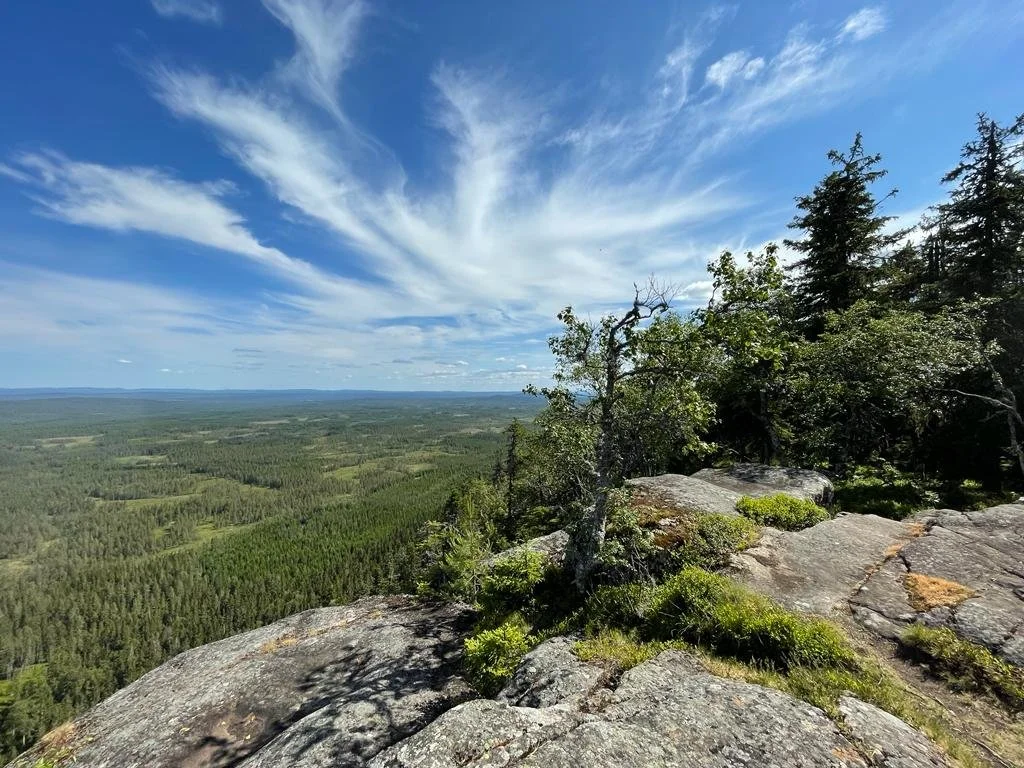We verblijven op de top van een berg in een 130 jaar oude eco-boerderij middenin de wildernis van Zweden (Tiomilaskogen). Al wandelend iets heuvel af, ligt ons eigen meer en er is een hout-gestookte sauna voor warme wellness. Miljoenen jaren oude stenen uit de ijstijd liggen verspreid in het gebied. Sommigen wel vele meters hoog.