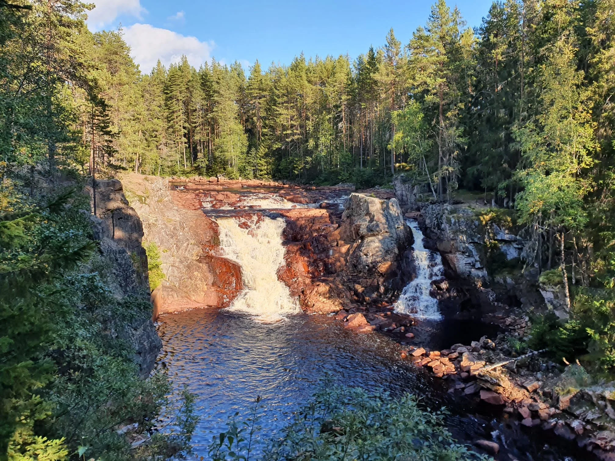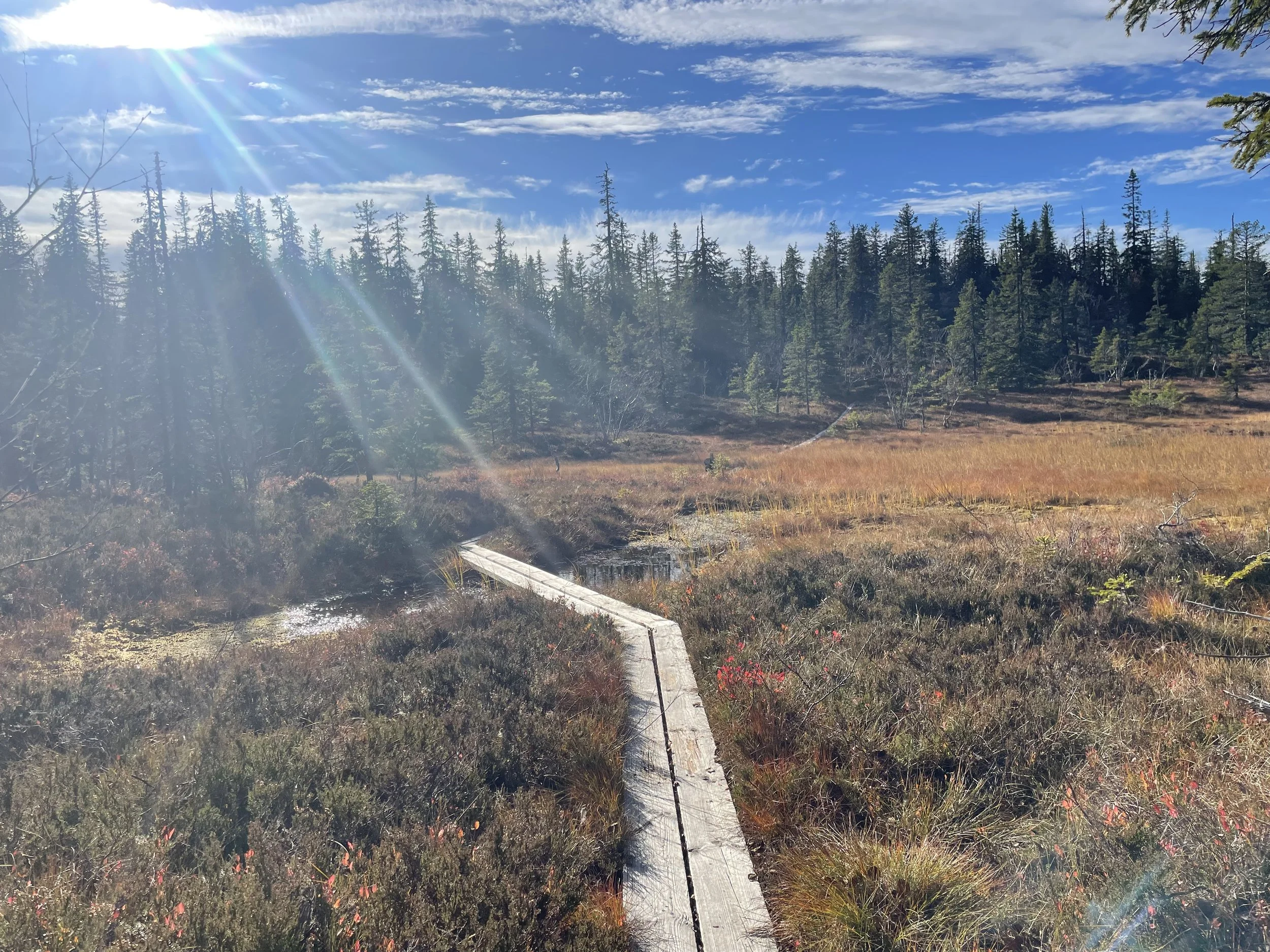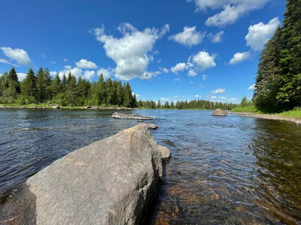 We verblijven op de top van een berg in een 130 jaar oude eco-boerderij middenin de wildernis van Zweden (Tiomilaskogen). Al wandelend iets heuvel af, ligt ons eigen meer en er is een hout-gestookte sauna voor warme wellness. Miljoenen jaren oude stenen uit de ijstijd liggen verspreid in het gebied. Sommigen wel vele meters hoog.